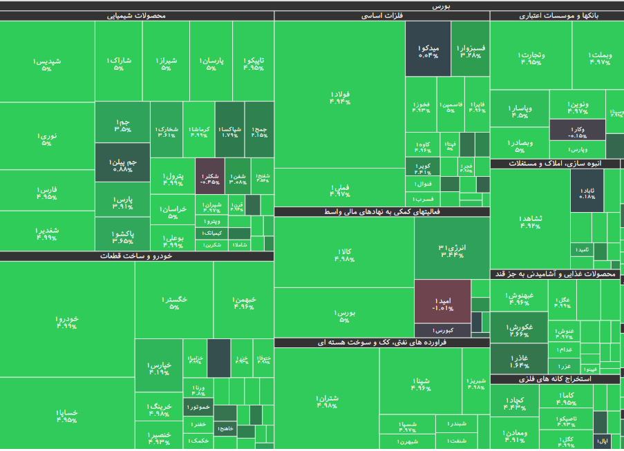بر اساس این گزارش، در معاملات امروز بورس تهران، نمادهای معاملاتی فارس، فولاد، فملی، شستا، پارسان و کگل با بیش‌ترین افزایش، تاثیر مثبتی در روند صعودی شاخص کل بورس داشتند. در مقابل، نمادهای معاملاتی امید، نمرینو و ثاباد ، بیش‌ترین تاثیر منفی را در برآورد نماگر کل بورس داشتند.