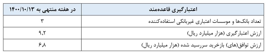 بانکها و موسسات اعتباری غیربانکی میتوانند در روزهای شنبه تا چهارشنبه از اعتبارگیری قاعدهمند (دریافت اعتبار با وثیقه از بانک مرکزی) مشروط به در اختیار داشتن اوراق مالی اسلامی دولتی و در قالب توافق بازخرید با نرخ سقف دالان نرخ سود (22 درصد) استفاده کنند.