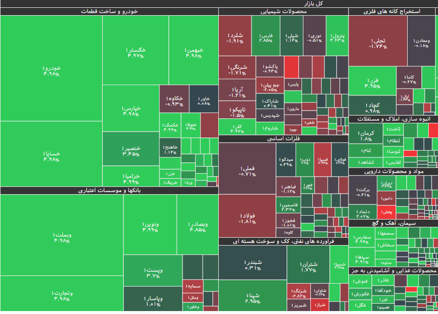 در بازار امروز، بیشترین افزایش قیمت متعلق به نماد کالا(بورس کالای ایران) با ۴.۹۶ درصد رشد و پس از آن، نمادهای غاذر، حکشتی، حتاید و سخاش بود. همچنین نماد معاملاتی انرژی۱(نهادهای مالی بورس انرژی) با ۴.۹۸ درصد، بیشترین کاهش قیمت را داشت و پس از آن نیز، نمادهای فاما، ثامان، کپارس و پرداخت قرار گرفتند.
