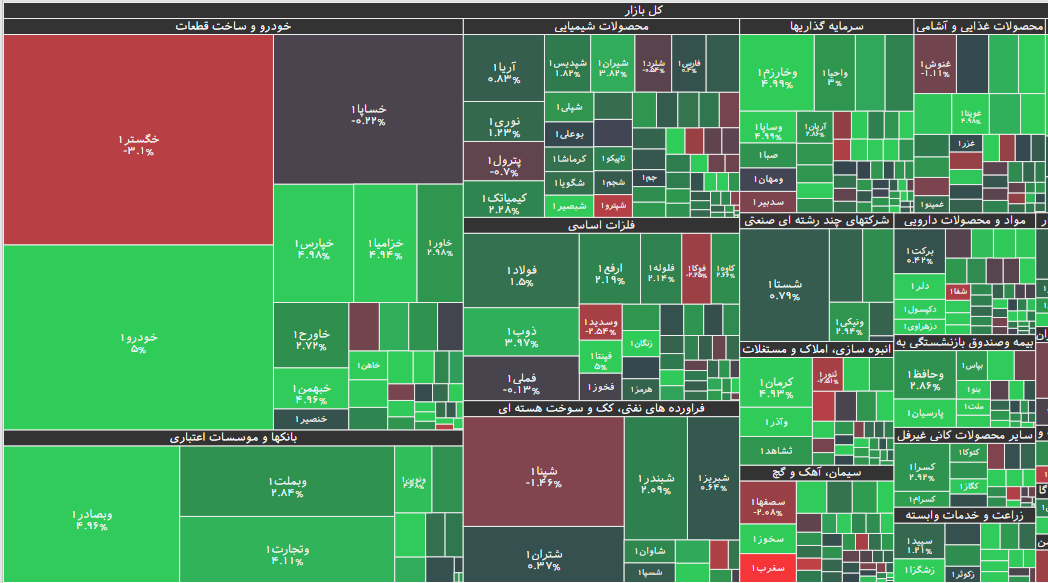 در بازار امروز، بیشترین افزایش قیمت متعلق به نماد کماسه(تامین ماسه ریختهگری) با ۴.۹۹ درصد رشد و پس از آن، نمادهای خپویش، وساپا، دامین و خبهمن بود. همچنین نماد معاملاتی سغرب(سیمانغرب ) با ۴.۱۹ درصد، بیشترین کاهش قیمت را داشت و پس از آن نیز، نمادهای فلامی، سصفها ، خگستر و وبیمه قرار گرفتند.