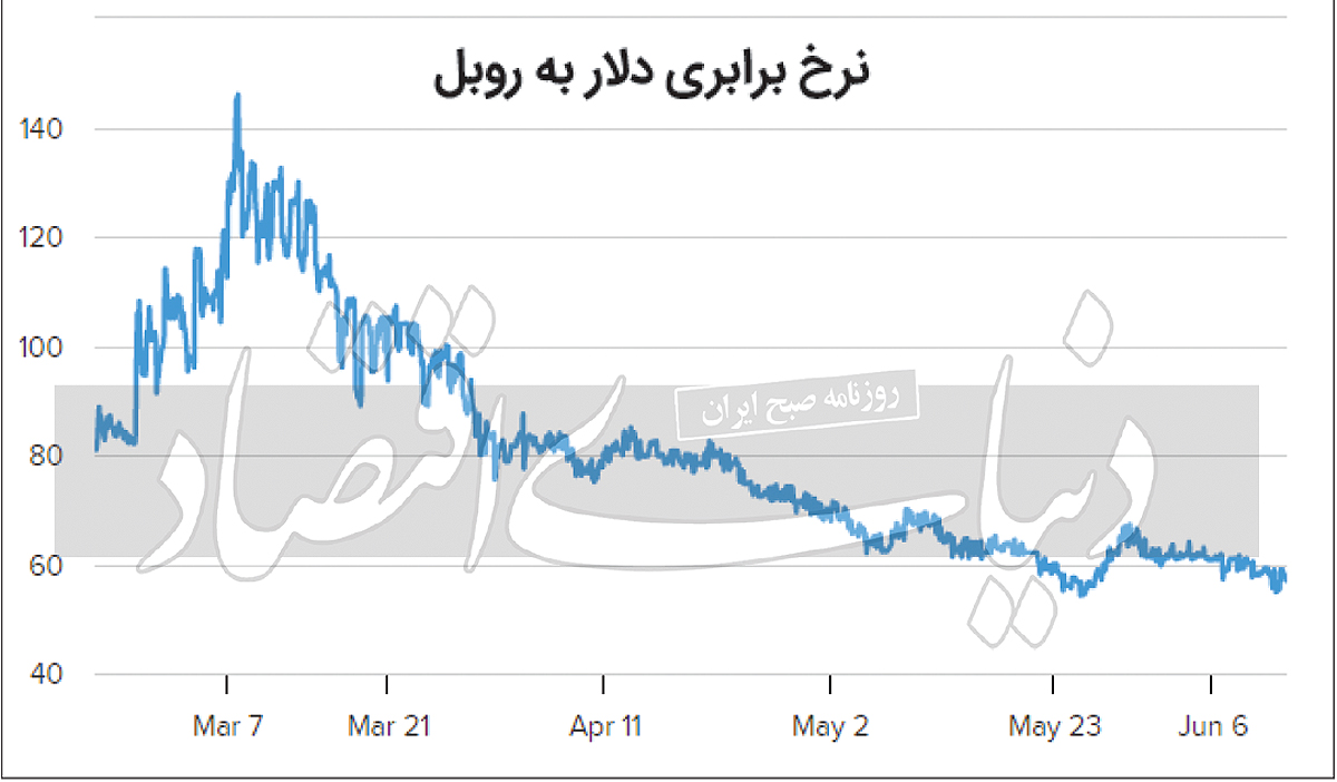 در واقع این گروه از اقتصاددانان معتقدند این نرخ ارز در بلندمدت موجب اختلال در روابط اقتصاد روسیه با اقتصاد جهانی خواهد شد. تورم روسیه نیز از ۸/ ۱۷درصد در آوریل به ۱/ ۱۷درصد در ماه مه رسیده است؛ تورم آوریل قله تورمی روسیه از ژانویه ۲۰۰۲ بهشمار میرود که نشان میدهد در آن زمان شوک تورمی ناشی از جنگ اوکراین و تحریمهای غرب به اوج خود رسیده است. در حال حاضر سیاستگذاران روس انتظار دارند که تورم روسیه در سال۲۰۲۲ بین ۱۴ تا ۱۷درصد به ثبت برسد و تا سطح ۵ تا ۷درصد در سال۲۰۲۳ کاهش یابد. پیشبینی میشود در سال ۲۰۲۴ نرخ تورم به ۴درصد بازگردد. از سوی دیگر کاهش واقعی فعالیتهای اقتصادی روسیه در سهماه دوم سال۲۰۲۲ کمتر از آنچه به پیشبینی میشد به ثبت رسید؛ به همین دلیل انقباض اقتصاد روسیه در سال۲۰۲۲ میتواند کمتر از پیشبینیها به ثبت برسد.