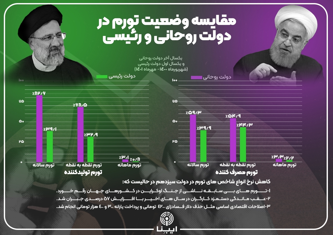مقایسه وضعیت تورم در دولت روحانی و رئیسی