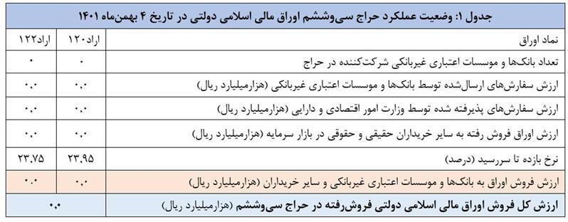 وزارت امور اقتصادی و دارایی الزامی به پذیرش کلیه پیشنهادات دریافتی یا فروش کلیه اوراق عرضهشده در حراج را ندارد. بانک مرکزی سفارشات دریافتشده را به منظور تصمیمگیری به آن وزارتخانه ارسال و وزارتخانه مزبور نسبت به تعیین سفارشهای برنده اقدام میکند. در نهایت، عرضه اوراق به تمامی برندگان انجام میشود. بانک مرکزی بر اساس بند «ن» تبصره (۵) قانون بودجه سال ۱۴۰۱ صرفاً مجاز به خرید و فروش اوراق مالی اسلامی دولت در بازار ثانویه اوراق است. کارگزاری این بانک ضمن تامینزیرساخت معاملات و برگزاری حراج، تعهدی نسبت به حجم و قیمت اوراق مالی اسلامی دولتی فروشرفته نداشته و اوراق مزبور را در بازار اولیه به منظور تامین مالی دولت خریداری نخواهد کرد.