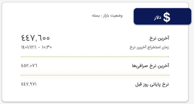 به گزارش خبرنگار ایبِنا؛ در معاملات امروز (دوشنبه یکم اسفند ۱۴۰۱) قیمت هر اسکناس دلار آمریکا در بازار متشکل ارزی به رقم ۴۴ هزار و ۷۶۰ تومان رسید. این در حالی است که آخرین نرخ دلار آمریکا در تابلوی صرافیها نیز ۴۵ هزار و ۲۰۷ تومان اعلام شده است.