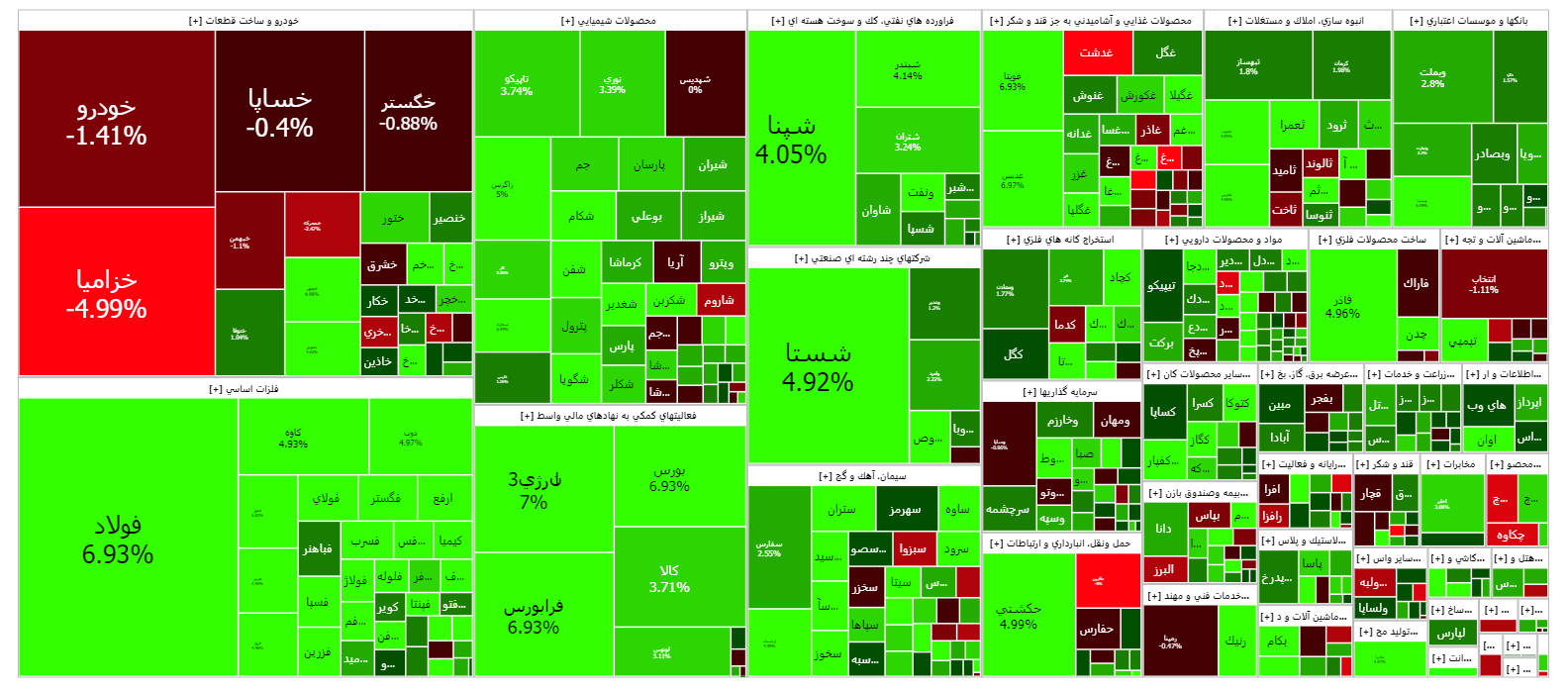 در این روز به ترتیب نمادهای فولاد، شستا، کچاد، شپنا و شبندر بیشترین تاثیر مثبت را بر شاخص کل بازار سرمایه داشتند و عامل تقویت بازار سرمایه شدند.
