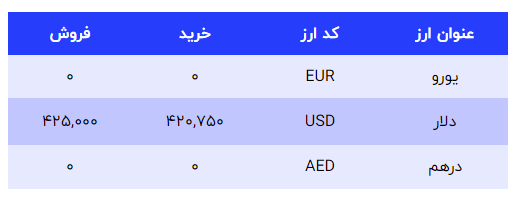 در حالی که قیمت دلار در مرکز مبادله با کاهش رونمایی شده است، بهای این ارز در تابلوی صرافی ملی نیز نزولی است. به گونهای که هر اسکناس دلار آمریکا در حال حاضر در صرافی ملی با افت ۳۰۰ تومانی نسبت به روز قبل به قیمت ۴۲۵۰۰ تومان فروخته میشود.