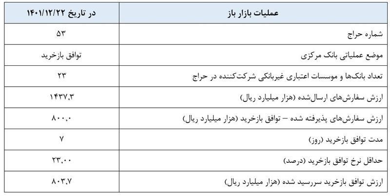 گزارش عملیات اجرایی سیاست پولی (۲۲ اسفندماه ۱۴۰۱) به شرح زیر است: