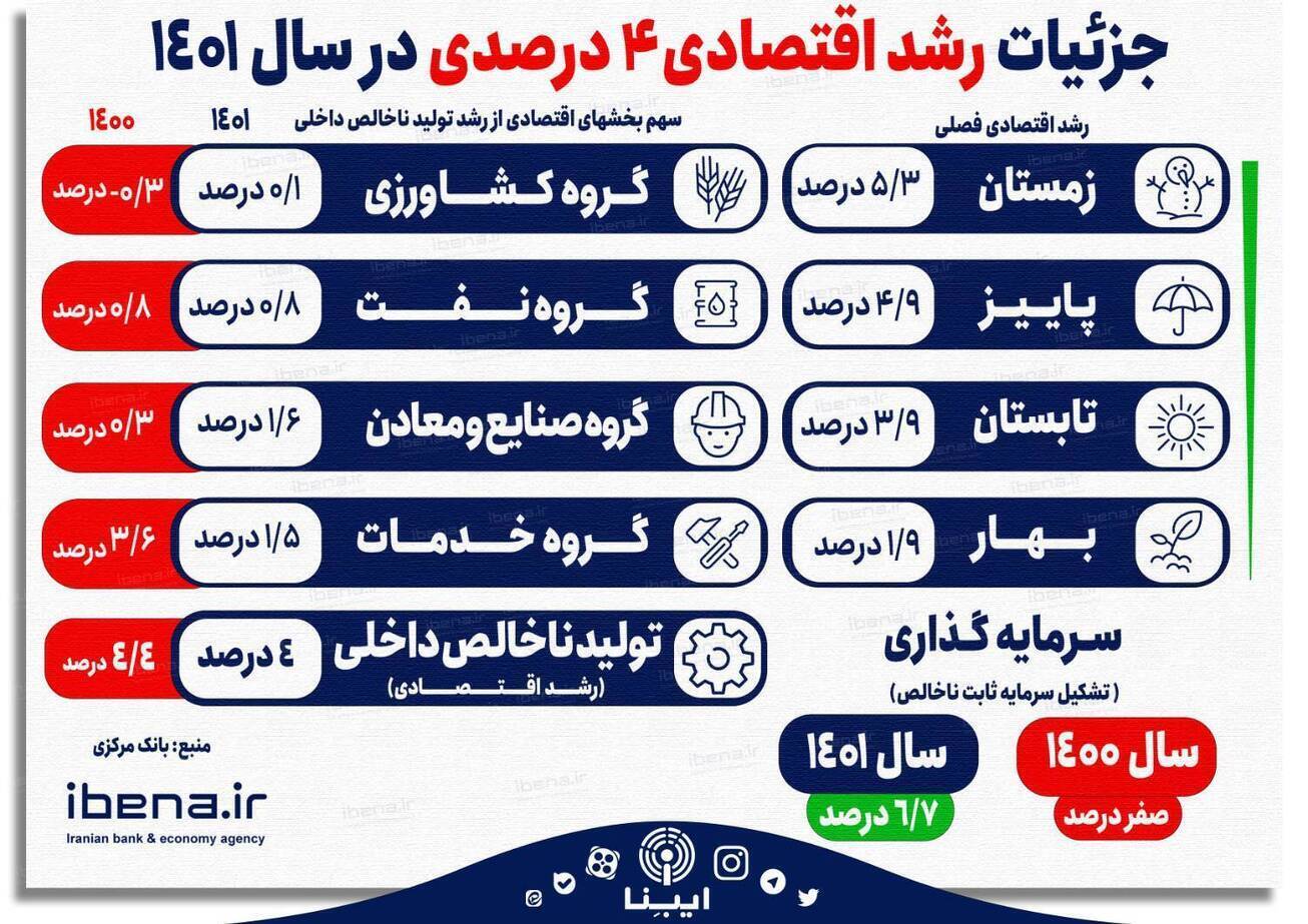 جزئیات رشد اقتصادی ۴ درصدی در سال ۱۴۰۱