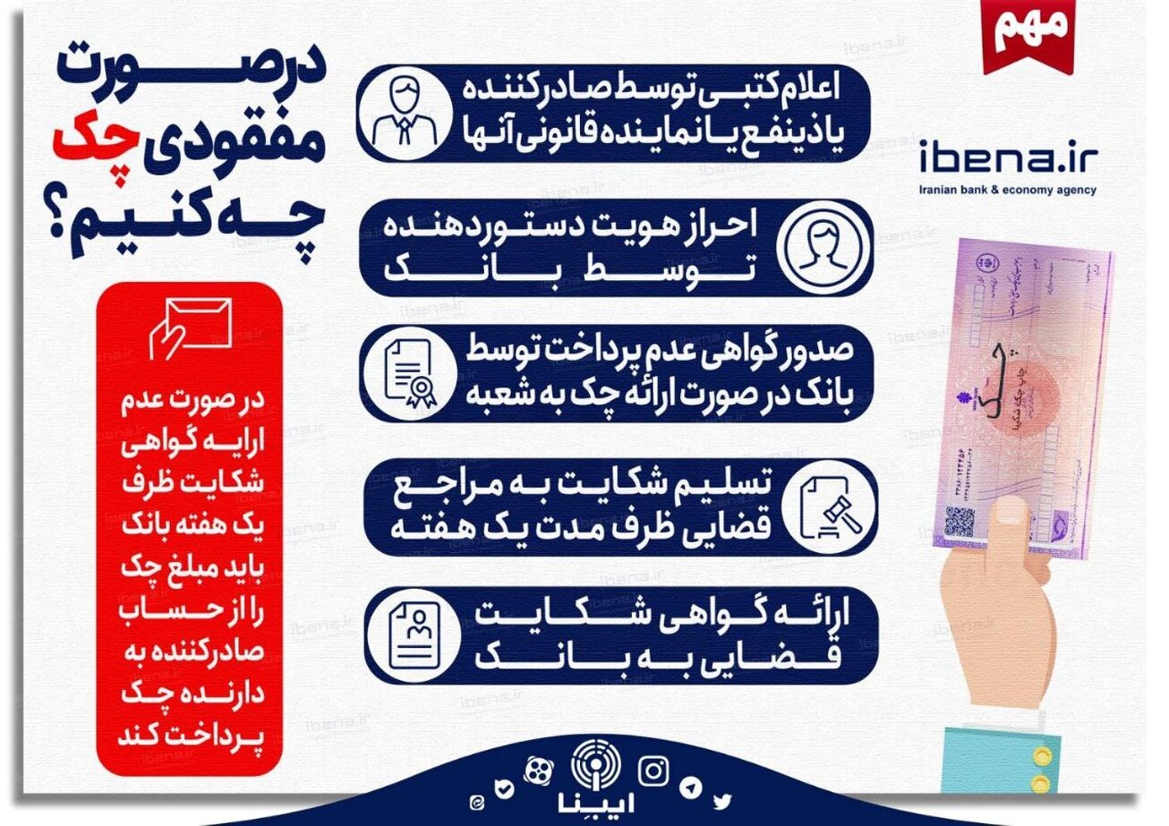 اقدامات لازم در صورت مفقودی چک