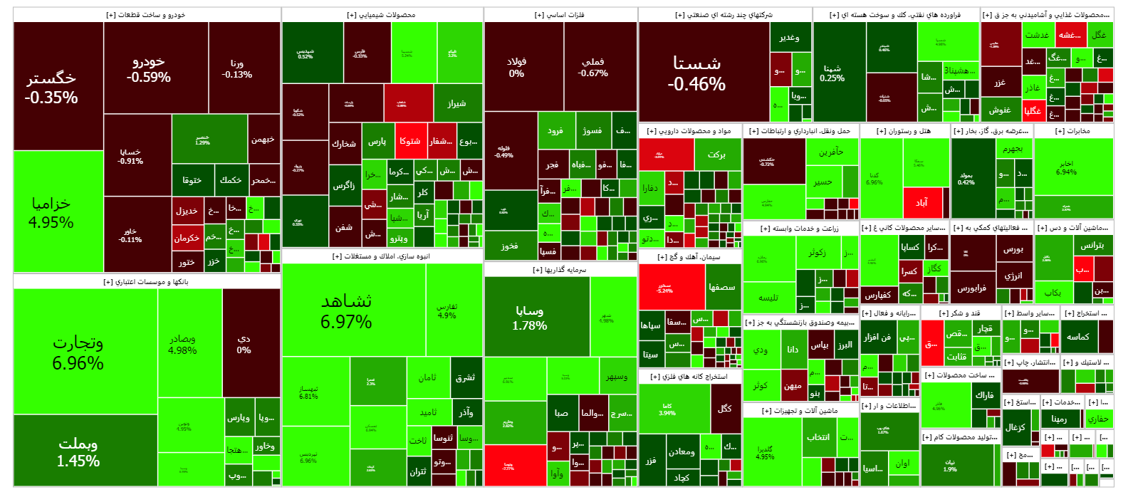 در این روز به ترتیب نمادهای اخابر، وتجارت، فارس، وبملت و تاپیکو بیشترین تاثیر مثبت را بر شاخص کل بازار سرمایه داشتند و عامل رشد بازار سرمایه شدند.