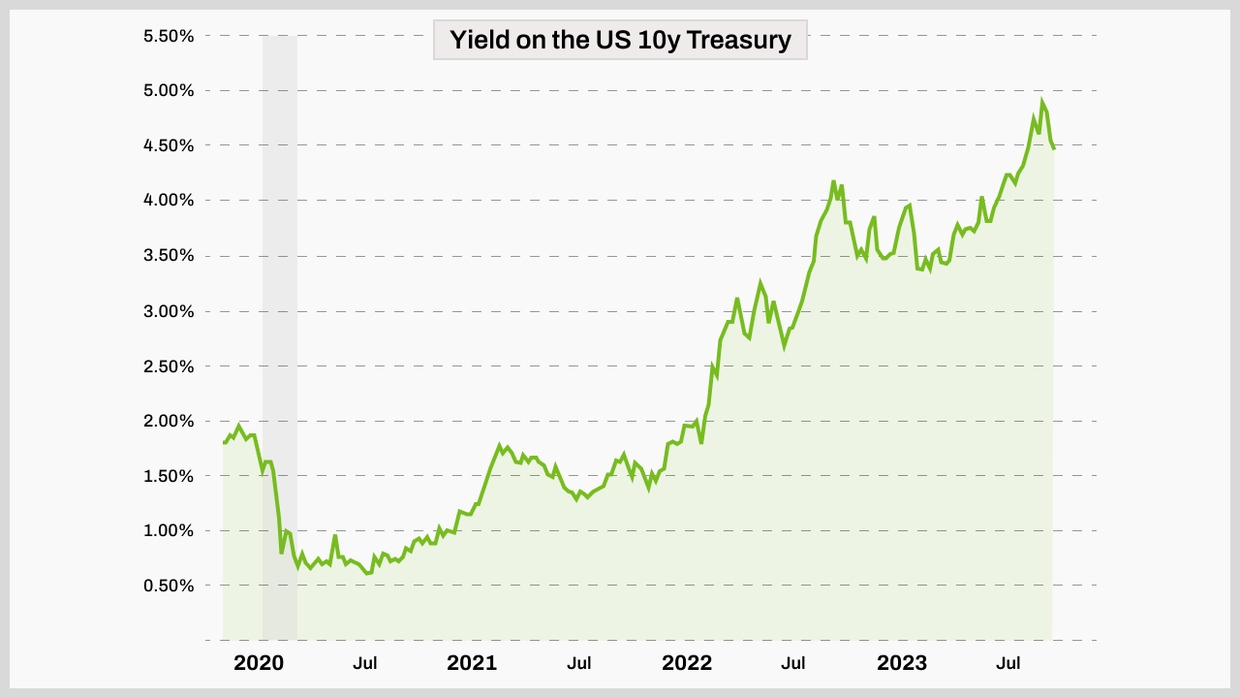 تمامی جهان شاهد افزایش شدید و بیسابقه بازده اوراق قرضه آمریکا در ماههای اخیر بودند. در ماه اکتبر نرخ بازده اوراق خزانهداری ۱۰ ساله ایالات متحده به مرز ۵ درصد نزدیک شد که در ۱۶ سال اخیر بیبدیل بوده است. واضح است، افزایش شدید در بازده اوراق خزانه ناشی از صعود سریع نرخهای بهره هدف فدرال رزرو بوده که در پاسخ به شوکها و پدیدههای نامطلوب بازار است. اما آنچه مشاهده شد چیزی بیش از تجلی فراز و نشیبهای بازار نابسامان است.