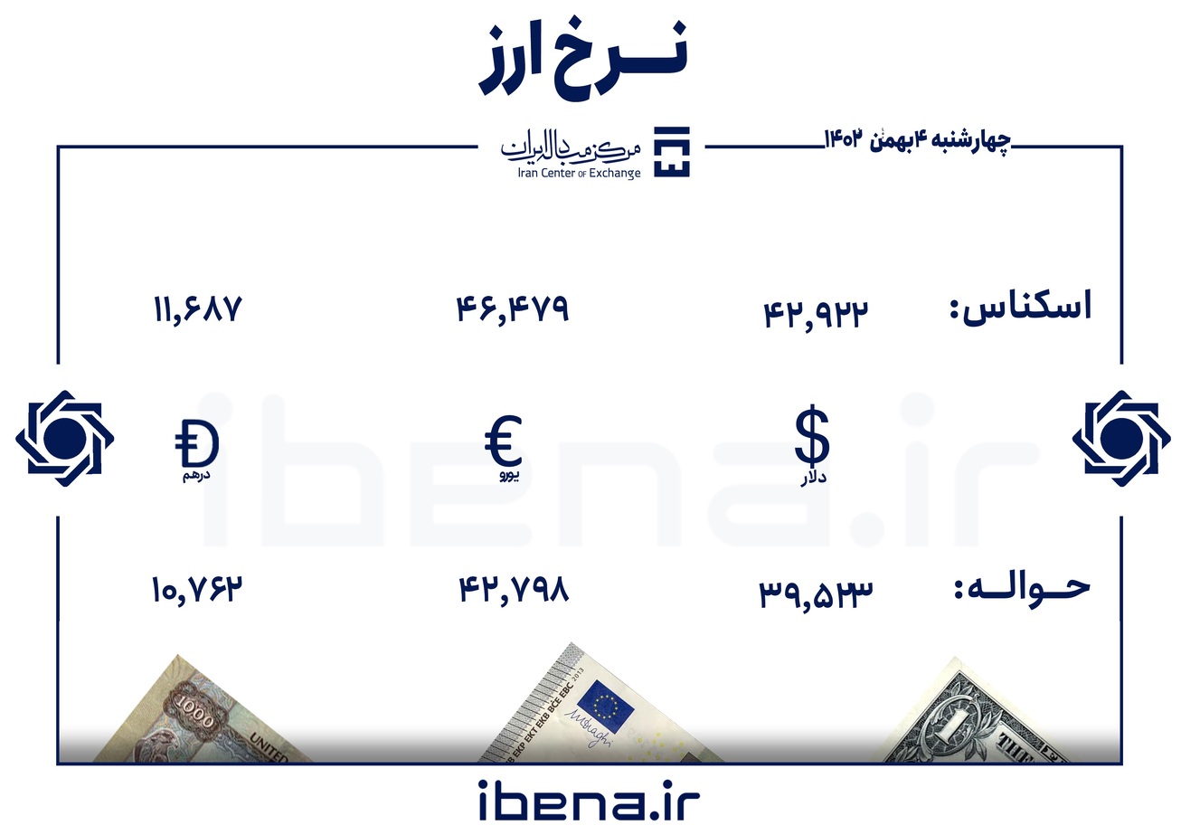 قیمت دلار و یورو در مرکز مبادله ایران؛ چهار‌شنبه ۴ بهمن