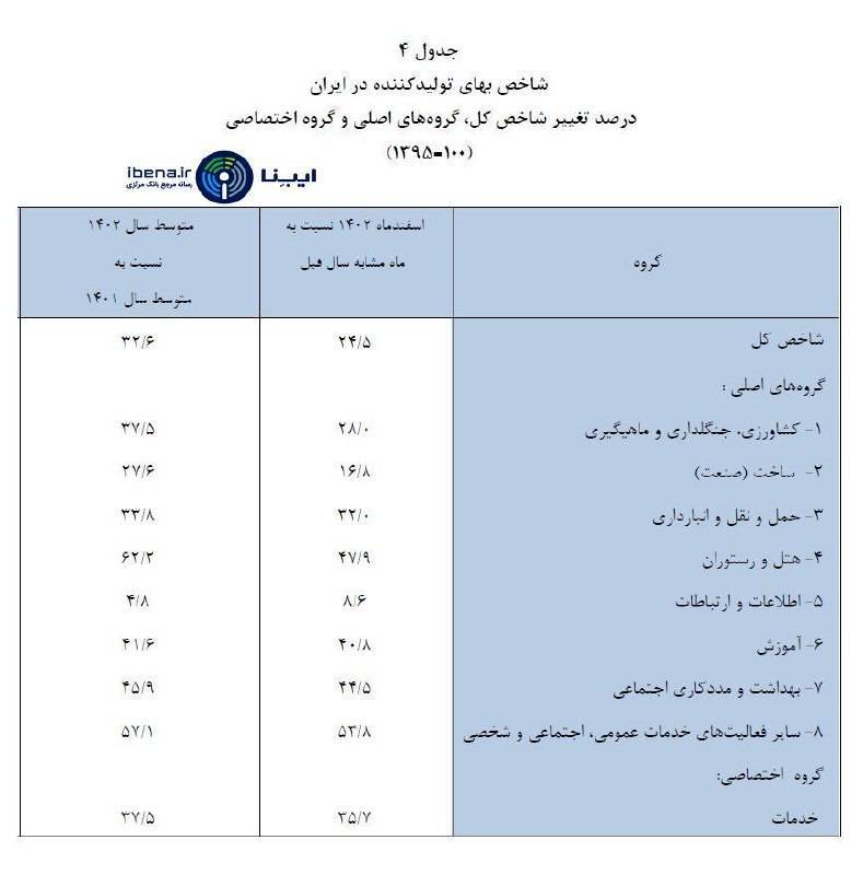 نرخ تورم (متوسط ۱۲ ماهه تورم شاخص بهای تولیدکننده) نیز از ۳۷.۳ درصد در فروردین ماه ۱۴۰۲ روند نزولی به خود گرفت و با کاهش ۴.۸ واحد درصدی، در پایان اسفندماه سال ۱۴۰۲ به ۳۲.۶ درصد رسید.