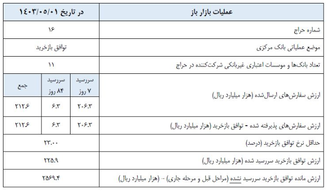 به گزارش ایبنا؛ گزارش عملیات اجرایی سیاست پولی (۱ مرداد ماه ۱۴۰۳) به شرح زیر است: