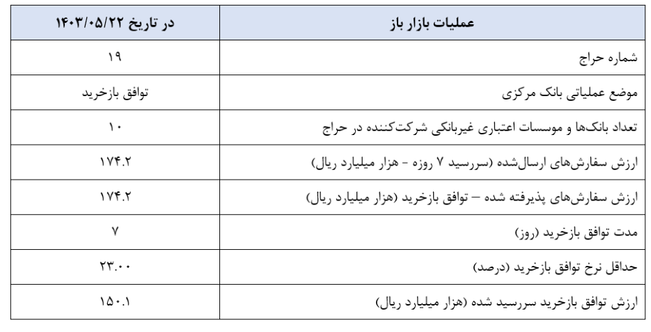 گزارش عملیات اجرایی سیاست پولی (۲۲ مرداد ماه ۱۴۰۳) به شرح زیر است: