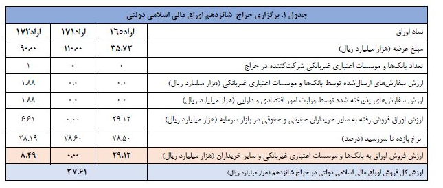 اعلام نتیجه شانزدهمین حراج اوراق مالی اسلامی دولتی
