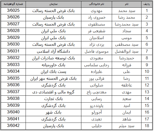 اسامی پذیرفته شدگان این آزمون به شرح زیر است: