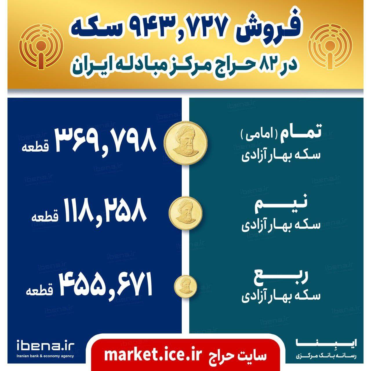 در این ۸۲ جلسه حراج، ۴۵۵ هزار و ۶۷۱ قطعه ربع سکه، ۱۱۸ هزار و ۲۵۸ قطعه نیم سکه و ۳۶۹ هزار و ۷۹۸ قطعه تمام سکه معامله شده است. در مجموع نیز ۹۴۳ هزار و ۷۲۷ قطعه انواع سکه به فروش رسیده است.