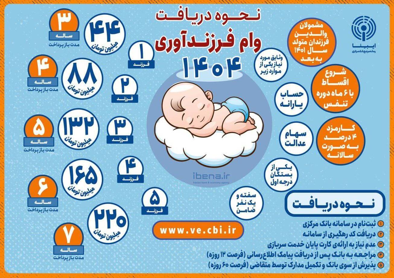 برای دریافت وام فرزندآوری ۱۴۰۴ ابتدا باید در سامانه بانک مرکزی به آدرس www.ve.cbi.ir ثبت نام کنید.