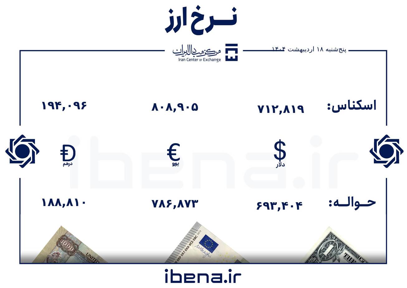 قیمت دلار و یورو در مرکز مبادله ایران؛ پنج شنبه ۱۸ اردیبهشت