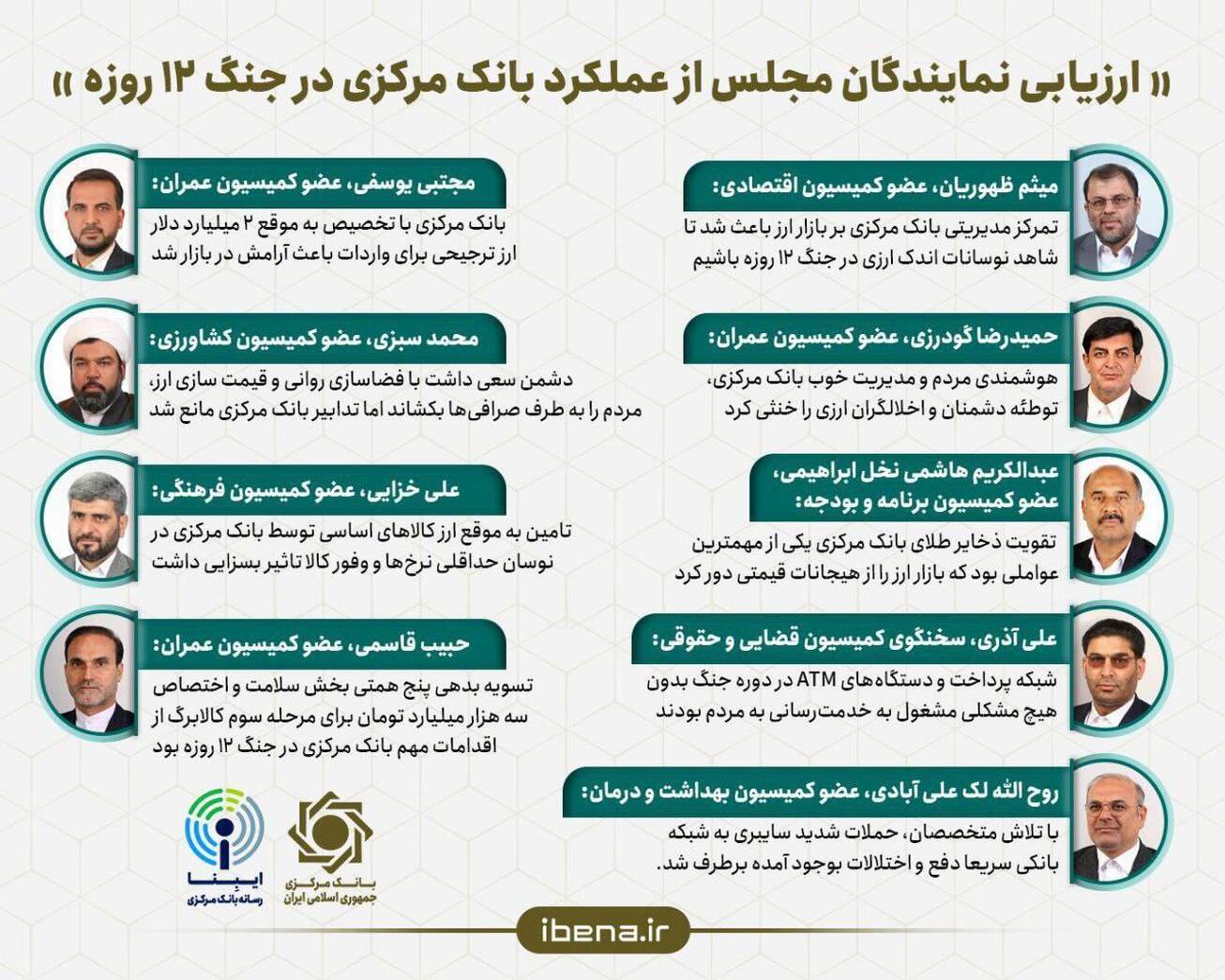 نمایندگان مجلس شورای اسلامی عملکرد بانک مرکزی را در جنگ ۱۲ روزه مثبت ارزیابی کردند.