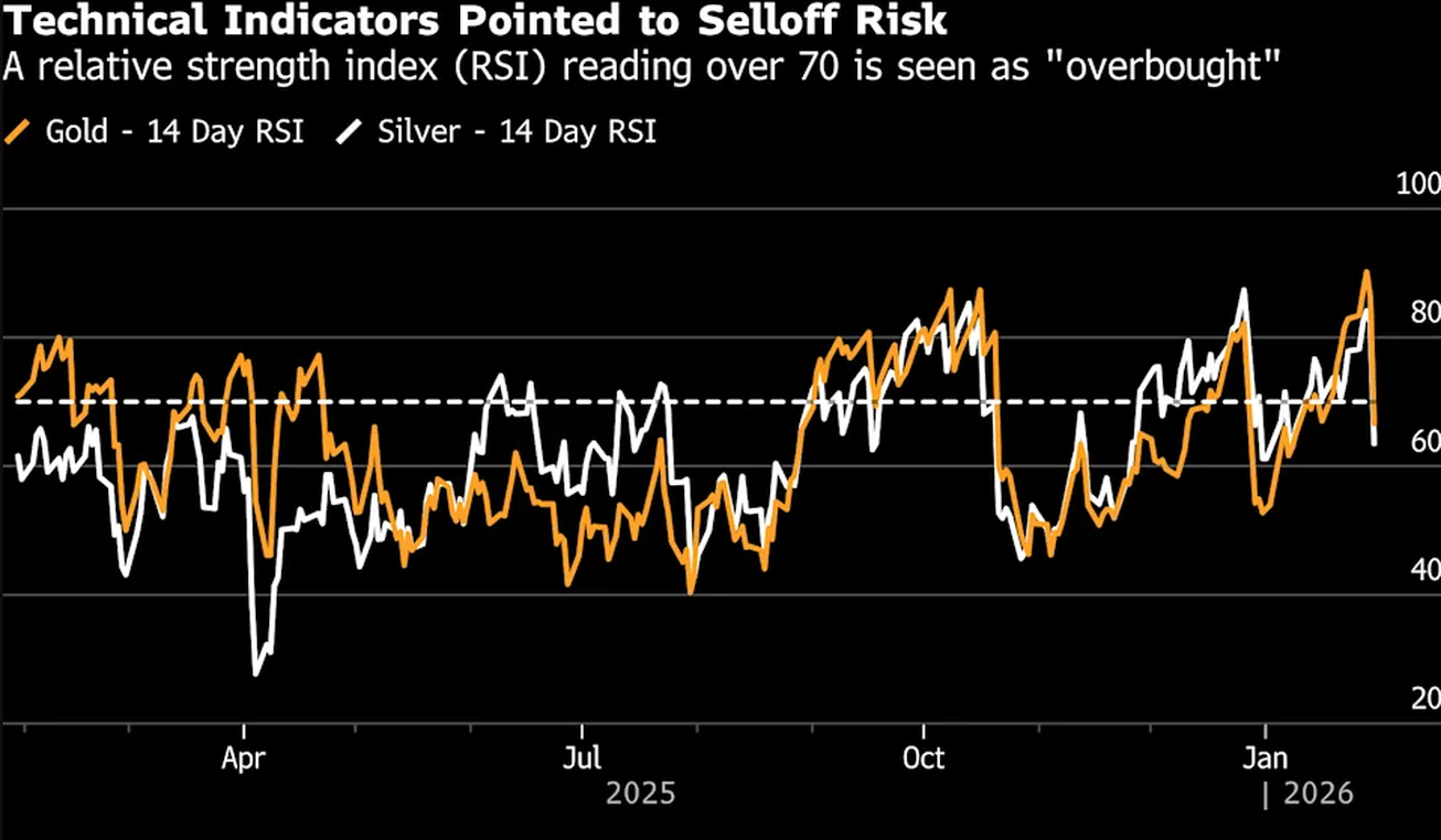 به گزارش خبرنگار بینالملل ایبنا به نقل از بلومبرگ، طلا و نقره شدیدترین افت قیمت سالهای اخیر را تجربه کردند و روند صعودی بیسابقهای که این فلزات را به بالاترین سطوح تاریخ رسانده بود، معکوس شد.