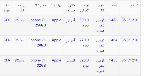 به گزارش ایبِنا، طبق اعلام گمرک ایران، گوشیهای آیفون یاد شده آسیایی بوده و ۵۳۰ تا ۸۰۰ یورو ارزشگذاری شده است. قیمت ریالی گوشیهای اعلامی گمرک، بین ۲ میلیون و ۲۵۵ هزار تومان تا ۳ میلیون و ۴۰۴ هزار تومان اعلام شد.