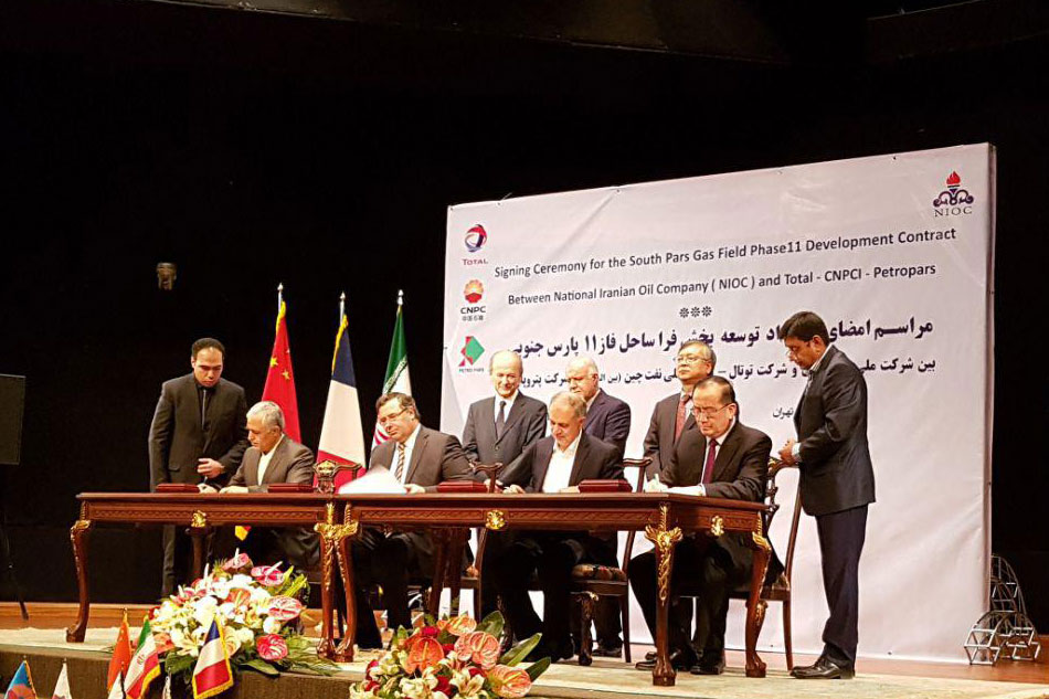 به گزارش ایبِنا و به نقل از شانا، شرکت ملی نفت ایران و کنسرسیوم توتال فرانسه، شرکت ملی نفت چین (سیانپیسی) و پتروپارس پس از هفت ماه از امضای موافقنامه امضای اصولی (HOA) فاز ۱۱ پارس جنوبی در ۱۸ آبان ماه ۱۳۹۵، امروز (دوشنبه، ۱۲ تیرماه) قرارداد توسعه این فاز را در قالب شرایط عمومی، ساختار و الگوی قراردادهای نفتی مصوب هیئت وزیران امضا کردند.