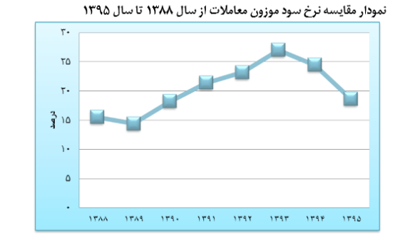 نرخ میانگین سود معاملات بازار از سال ۱۳۸۸ تا پایان ۱۳۹۵