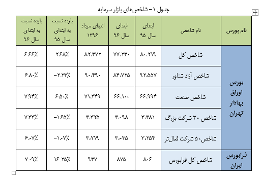 در جدول یک شاخص های اصلی در بورس تهران و فرابورس به صورت خلاصه آمده است.