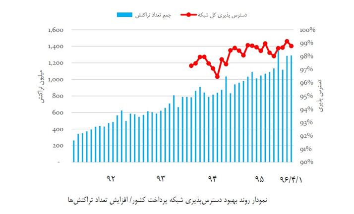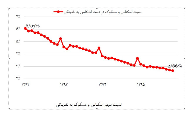 بررسیها نشانمیدهد نسبت اسکناس و مسکوک در دست اشخاص به نقدینگی طی سالهای اخیر به شدت کاهش یافته و از حدود ۶ درصد در سال ۹۲ به ۲,۶۶ درصد در پایان سال ۹۵ رسیدهاست. این کاهش نشاندهنده افزایش کاربری و اعتماد عمومی به شبکه پرداخت الکترونیک کشور است.