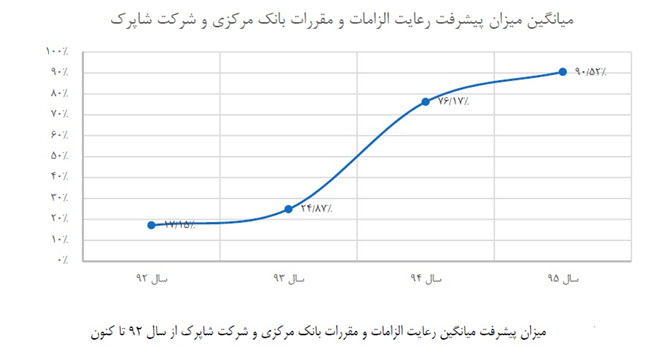 میزان تطابق عملکرد شرکتها در حوزه استانداردهای امنیتی از ۳۵ درصد در سال ۹۳ به بیش از ۹۵ درصد در پایان سال ۹۵ رسیده است.