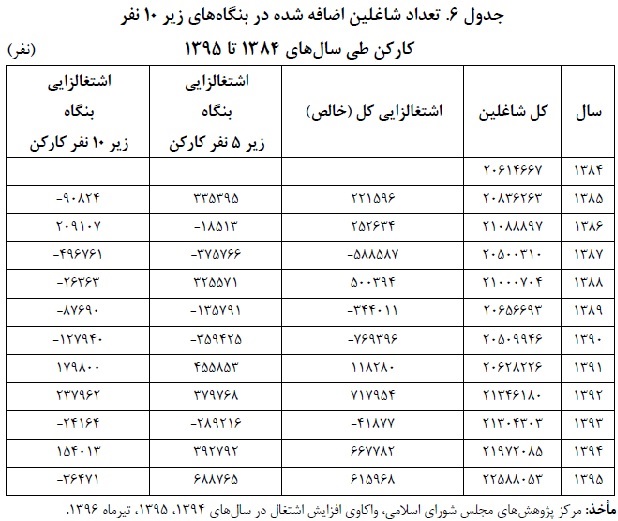 نتایج آمارگیری از کارگاه های صنعتی ده نفر کارکن و بیشتر نشان می دهد که بیشتر تعطیلی و ریزش واحدهای صنعتی طی یک دهه اخیر به صنایع کوچک (واحدهای ۱۲ تا ۴۹ نفر کارکن) اختصاص داشته است. با توجه به اهمیت واحدهای کوچک در اشتغال زایی، به نظر می رسد تعطیلی این واحدها، نقش مهمی در تنزل ظرفیت اشتغال زایی بخش صنعت داشته است.