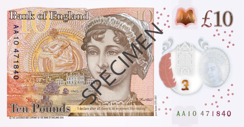 به گزارش خبرنگار ابیِنا به نقل از سی ان بی سی، اسکناس جدید ۱۰ پوندی در هفته جاری میلادی وارد سبد پولی بریتانیا خواهد شد؛ این در حالی است که انتشار اسکناس جدید بانک انگلیس مقارن با دویست و مین سالگرد مرگ «جین آستن» نویسنده صاحب نام انگلیسی خواهد بود و در قسمت پشت این اسکناس تصویر این نویسنده نقش بسته شده است.