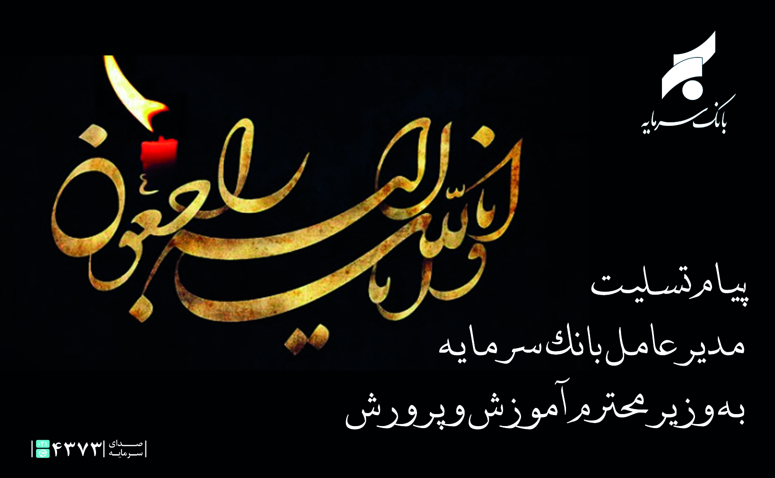 اینجانبان به نمایندگی از خانواده بانک سرمایه این ضایعه مولمه را خدمت حضرتعالی تسلیت عرض نموده از خداوند منان برای آن فقیده سعیده، علو درجات و حشر با اولیای گرامی اش و برای حضرتعالی و سایر منسوبین صبر جمیل و اجر جزیل مسألت داریم.