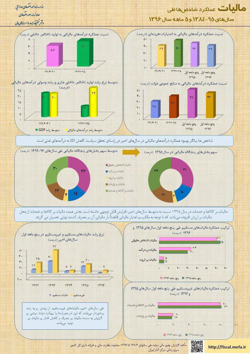 دولت معتقد است بهبود شاخص ها در این بخش و رشد وصول درآمدهای مالیاتی طی سال های اخیر در راستای تحقق سیاست کاهش اتکا به درآمدهای نفتی بوده، از اینرو نسبت عملکرد درآمدهای مالیاتی به تولید ناخالص داخلی از ۵.۶ درصد در سال های ۸۴ تا ۹۱ به ۶.۷ درصد در دوره زمانی ۹۲ تا ۹۵ رسیده است.