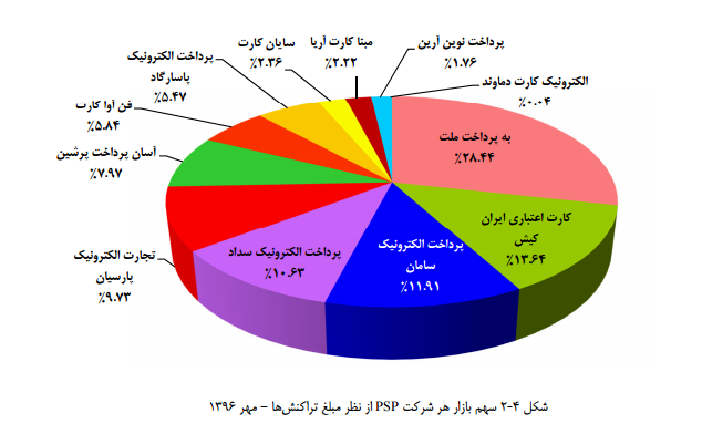 سهم بازار هر شرکت PSP از نظر مبلغ تراکنش ها