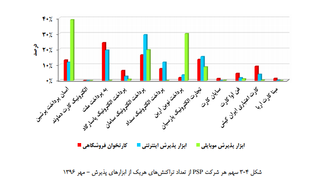 سهم شرکت های PSP از بازار تراکنش های هر یک از ابزارهای پذیرش