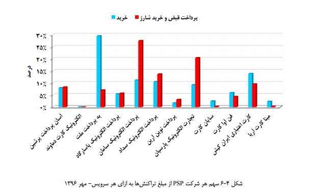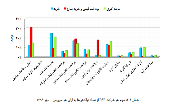سهم شرکت های PSP از بازار تراکنش های هر سرویس