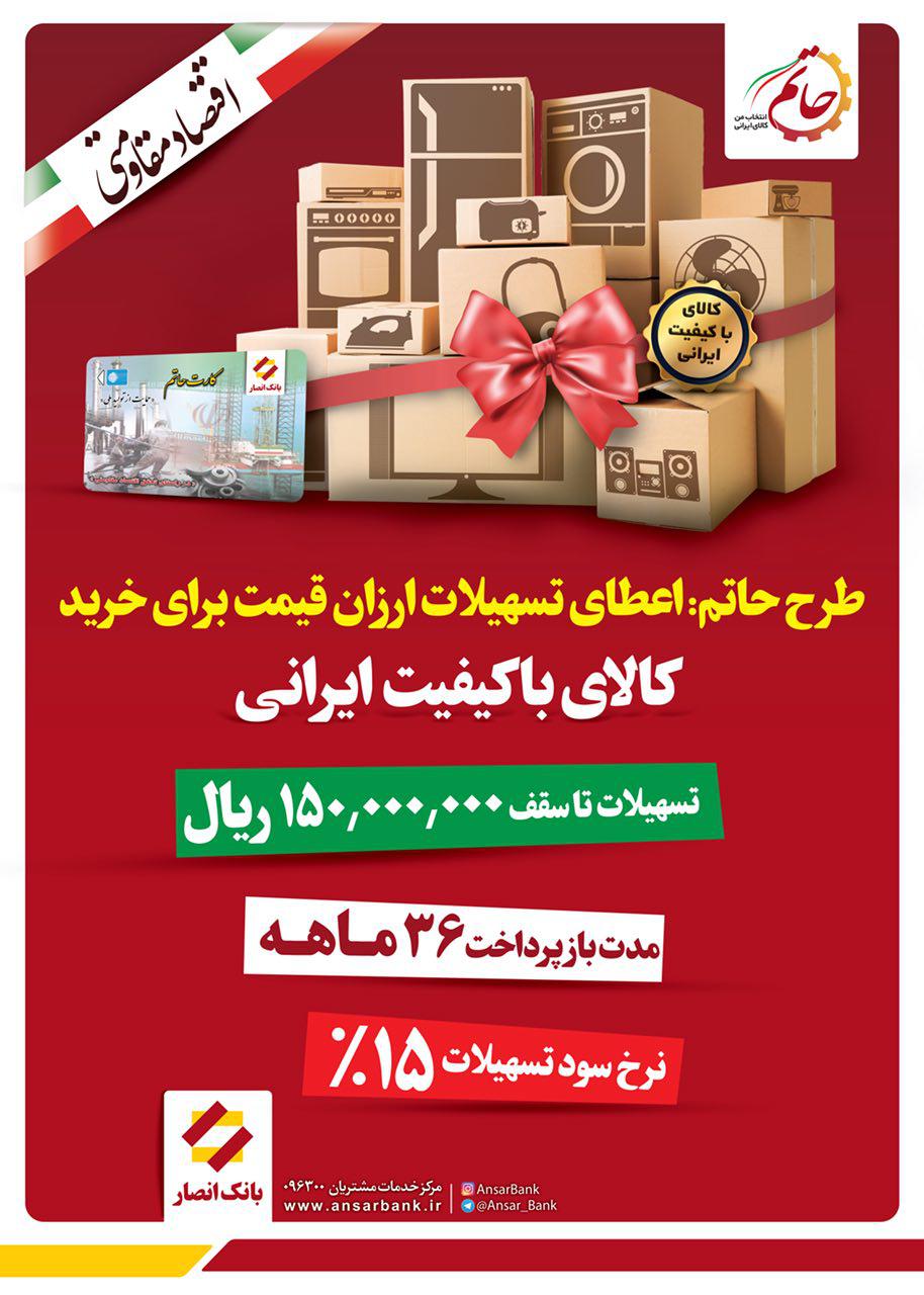 شایان ذکراست که شرایط بهرهمندی، نحوه ثبتنام، چگونگی دریافت کالا، نحوه بازپرداخت اقساط و اطلاعات دیگر مورد نیاز در سایت https://hatam.ansarbank.com به طور کامل درج شده است.