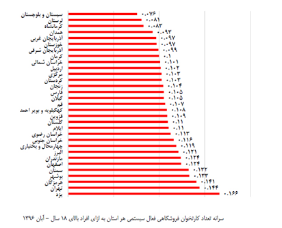 سرانه تعداد کارتخوان فروشگاهی فعال سیستمی به ازای هر فرد بالای ۱۸ سال