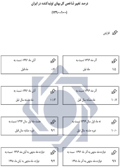 این شاخص در آذر ماه ۱۳۹۶ نسبت به ماه مشابه سال قبل معادل۱۰.۷ درصد افزایش نشان میدهد.