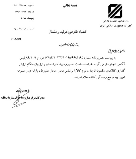 به گزارش ایبِنا، در ابلاغیه گمرک که نسخه ای از آن به پلیس آگاهی ارسال شده، آمده است: خواهشمند است دستور فرمایید کارشناسان و ارزیابان هنگام ارزشگذاری کالاهای مکشوفه قاچاق، نوع کالا را بر اساس مجاز، مجاز مشروط، یارانه ای و ممنوعه تعیین و به مرجه رسیدگی کننده اعلام نمایند.