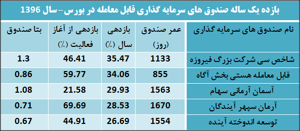 عملکرد یک ساله صندوق‌های سرمایه‌گذاری کشور برای سال ۱۳۹۶ اعلام شد.