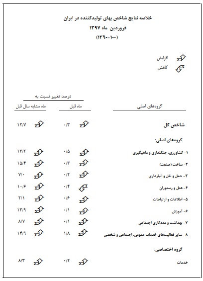 این شاخص در فروردین ماه ۱۳۹۷ نسبت به ماه مشابه سال قبل معادل ۱۲.۷ درصد افزایش نشان میدهد.