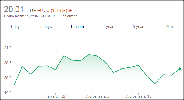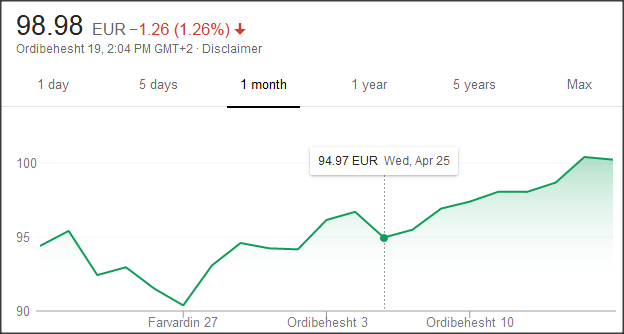 • روند نوسان قیمت سهام شرکت ایرباس در یک ماه اخیر