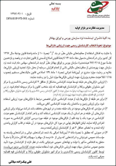 بر اساس اعلام مدیر نظارت بر بازار اولیه سازمان بورس کلیه شرکت های سهامی عام ثبت شده نزد سازمان بورس برای استفاده از معافیت مالیاتی ناشی از افزایش سرمایه از محل مازاد تجدید ارزیابی دارایی ها، علاوه بر رعایت آیین نامه اجرایی اصلاحی قانون مالیات های مستقیم، برای ارزیابی دارایی ها، ناشران باید موارد اعلام شده را رعایت کنند.