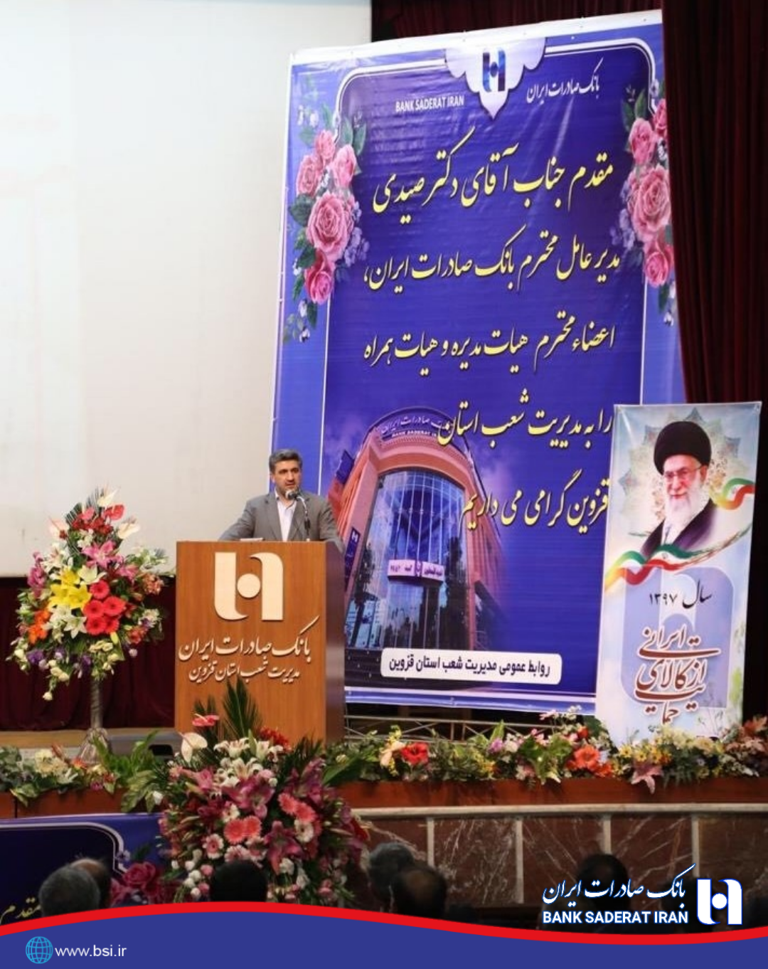 مدیرعامل بانک صادرات ایران گفت: شهر قزوین از یک سو پایتخت خوشنویسی و شهر میرعماد حسنی (عمادالکتاب) است که شهرتی جهانی دارد و از یک سو شاهراه ترانزیت کالا، منشا و معدن تجارت و قطب صنعت در کشور است و از این رو بانک صادرات ایران باید خدمات گسترده تری به مشتریان این شهر و کل استان قزوین ارائه دهد.