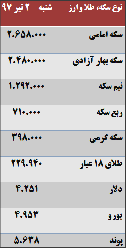 جدول نرخ ارز و سکه در بازار (قیمت‌ها به تومان)