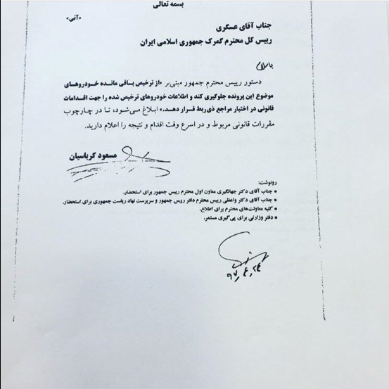 در همین راستا در ابلاغیه ای به فرود عسگری، رییس کل گمرک ایران اعلام کرد: دستور رییس جمهوری مبنی بر "از ترخیص باقی مانده خودروهای موضوع این پرونده جلوگیری کند و اطلاعات خودروهای ترخیص شده را جهت اقدامات قانونی در اختیار مراجع ذی ربط قرار دهد" ابلاغ می شود، تا در چارچوب مقررات قانونی مربوط و در اسرع وقت اقدام و نتیجه را اعلام دارید.